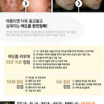 HOT SUMMER 여드름케어 PDT프로그램 여름이면 더욱 심해지는 여드름! 이제 놀라운 피부 변화를 경험하라 선택1 여드름지우개 마일드 PDT PDT 2회 + IPL 1회 + 필링 1회 + 재생 2회 + 블랙헤드 1회 GA 필링 2회 혜택 선택2 여드름지우개 집중 PDT PDT 4회 + IPL 1회 + 필링 1회 + 재생 2회 VSM 필링 1회 혜택 여름이면 더욱 울긋불긋 심해지는 여드름 완전정복! 여드름 개선은 물론이며, 여드름 흉터와 잔주름까지 개선되고 색소 질환, 피부 탄력 개선의 효과까지! 매끈한 아기 피부가 부럽지 않다! 여드름 지우개 PDT 치료 장점 ① 15~20분 짧은 시술시간으로 여드름 박테리아만 파괴하고, 주위 피부 ② 조직에는 아무런 영향을 끼치지 않아 피부 손상이 없이 치료 가능 ..
